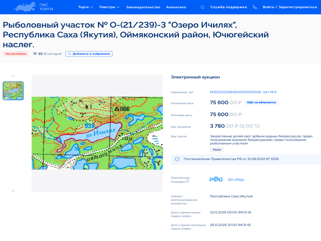 Аукцион на рыболовные участки в Якутии завершился контрактами без торгов