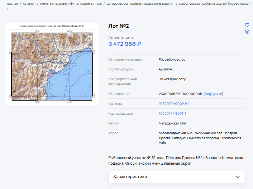 — Участок в районе залива Пёстрая Дресва с начальной ценой около 3,5 миллиона рублей (https://clck.ru/3QAp8E);