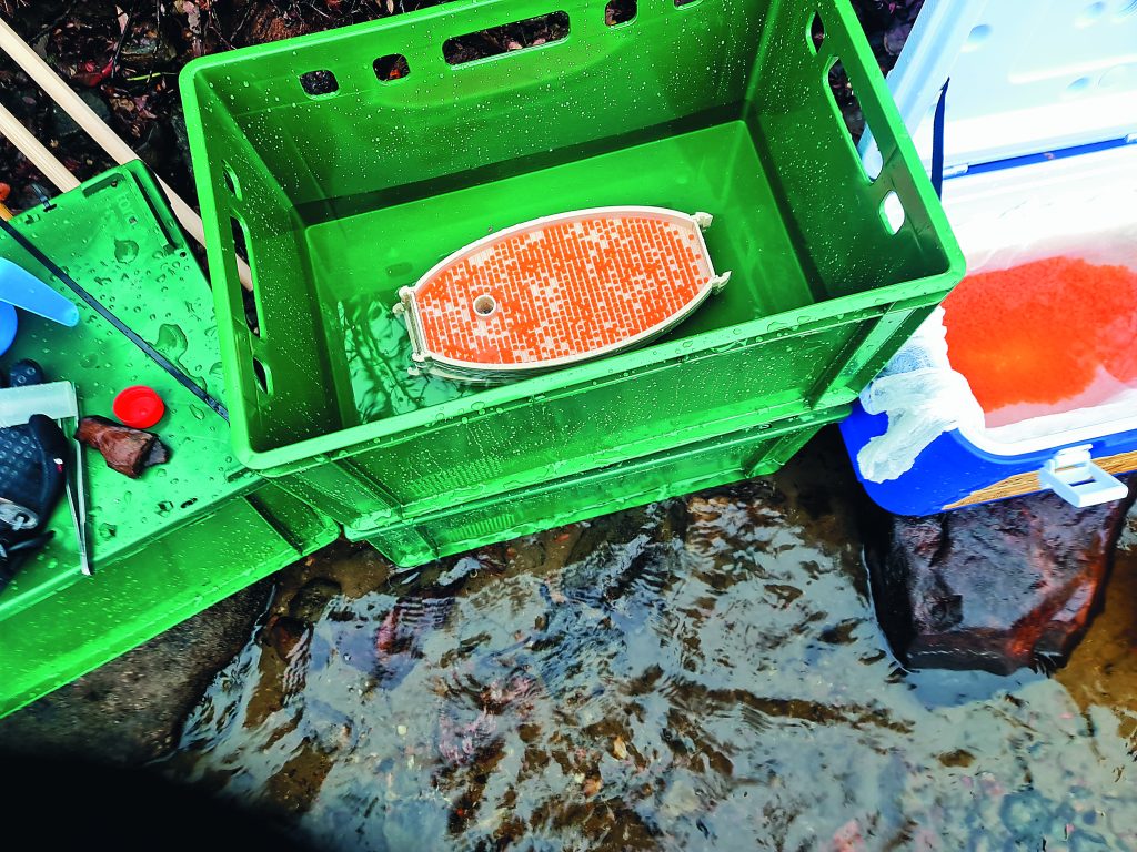 После оплодотворения и не менее 12 часов набухания икры было необходимо произвести ее доставку к месту установки инкубаторов, что и было осуществлено в изотермическом контейнере на следующий день.